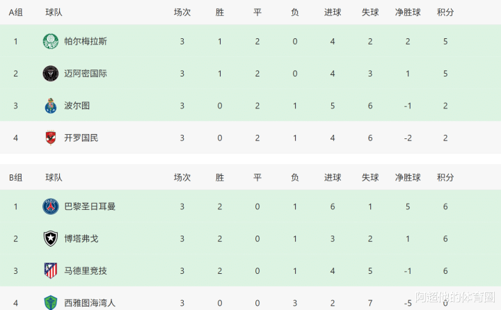 A小组最终排名:迈阿密国际第二出线,波尔图出局